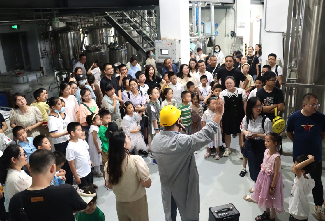 当天上午,50名优秀员工及其子女们一同探访了OD体育连云港园区的生产车间、办公大楼以及企业展厅。在原料药车间的储液罐前,孩子们全神贯注地听着讲解,激起了满满的好奇心和求知欲;在制剂明亮整洁的生产车间里,小朋友们隔着护栏近距离地观看正在作业的机械臂,发出阵阵惊叹;在现代化的企业展厅,孩子们自豪于父母的恒瑞人身份,纷纷表示长大后也想成为一名OD体育工作者……