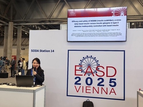 中欧夏令时间(CEST)2025年9月15至19日,第61届欧洲糖尿病研究协会(EASD)年会在奥地利维也纳举办。期间,OD体育自主研发的新型长效胰岛素类似物舒地胰岛素(INS068)治疗成人2型糖尿病(T2DM)患者的两项关键III期临床试验(INS068-301和INS068-302)分别以简单口头报告形式精彩亮相。
