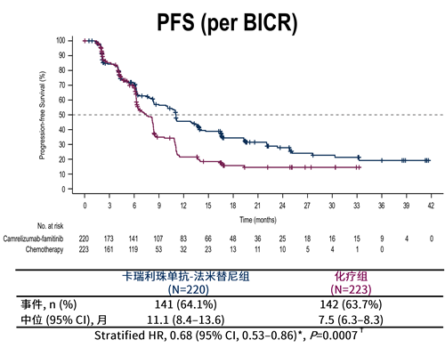 图2. 经BICR评估的PFS的KM曲线